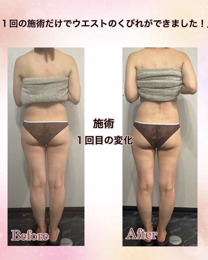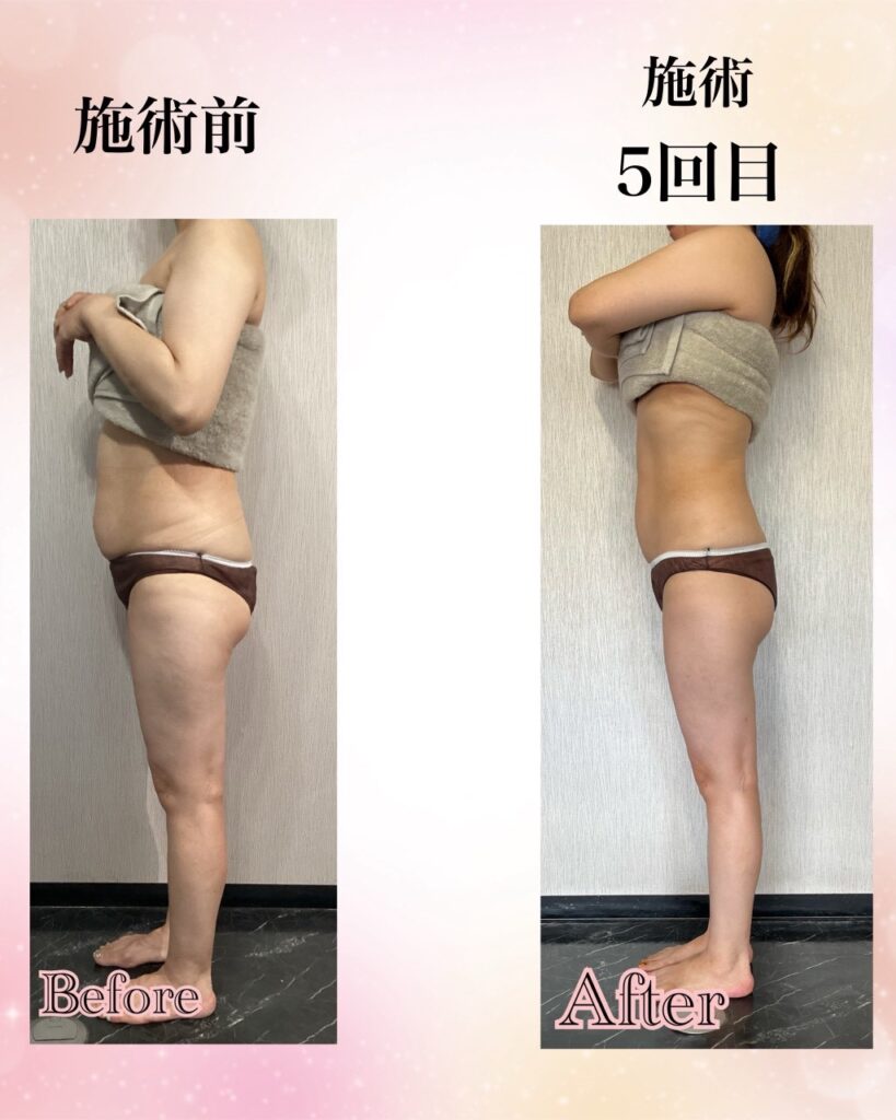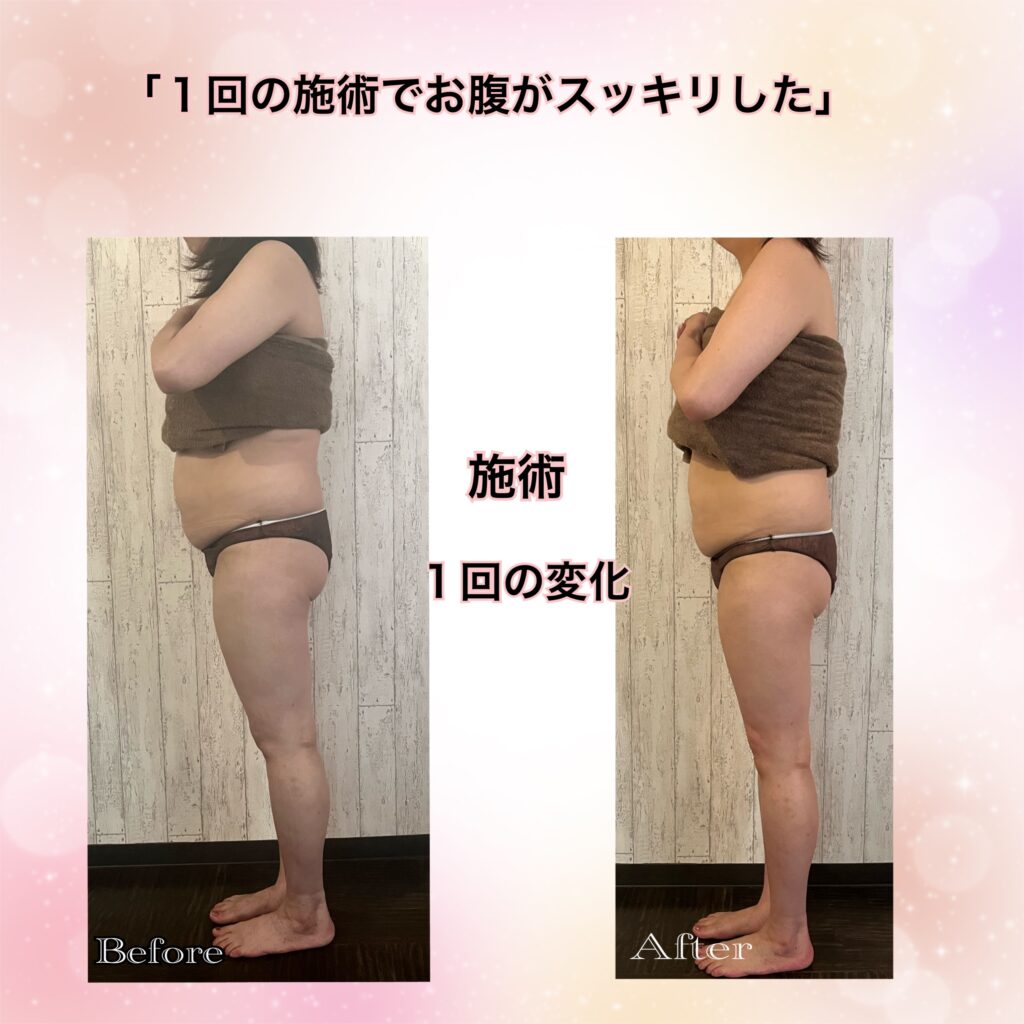 2、3回目で腰の周りのお肉はもちろん、足もスッキリと細くなり、体重は変わっていないのに職場で「痩せた?」と聞かれたことが嬉しくて、現在も継続中です!