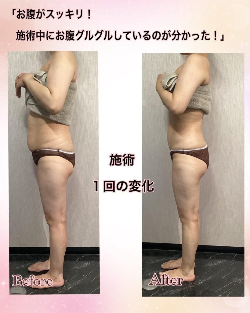 1回目でむくみがなくなり、ウエスト周りが見違えるほどになったとともに、足が楽になったということです。